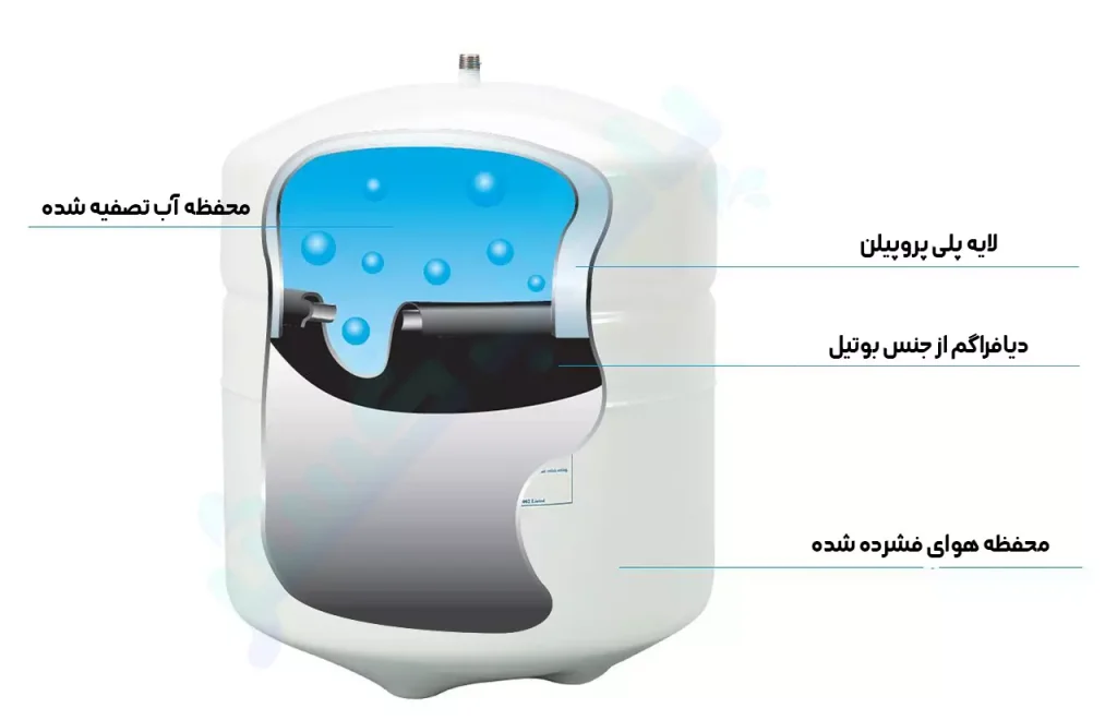 - قسمت ذخیره آب: آب تصفیهشده در این بخش نگهداری میشود.